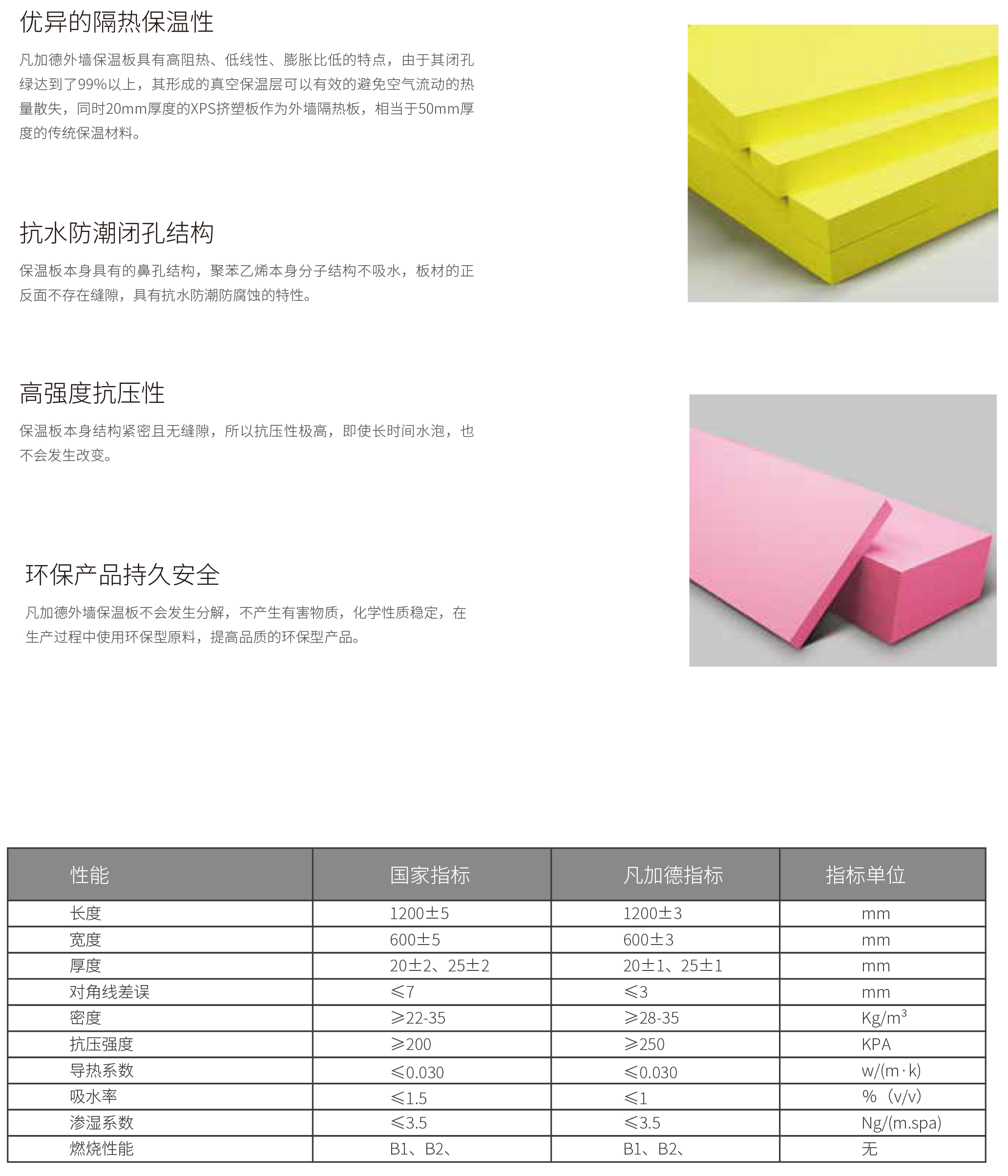 凡加德外墙保温板不会发生分解,不产生有害物质,化学性质稳定,在生产过程中使用环保型原料,提高品质的环保型产品。